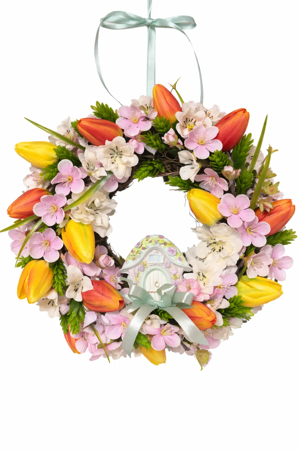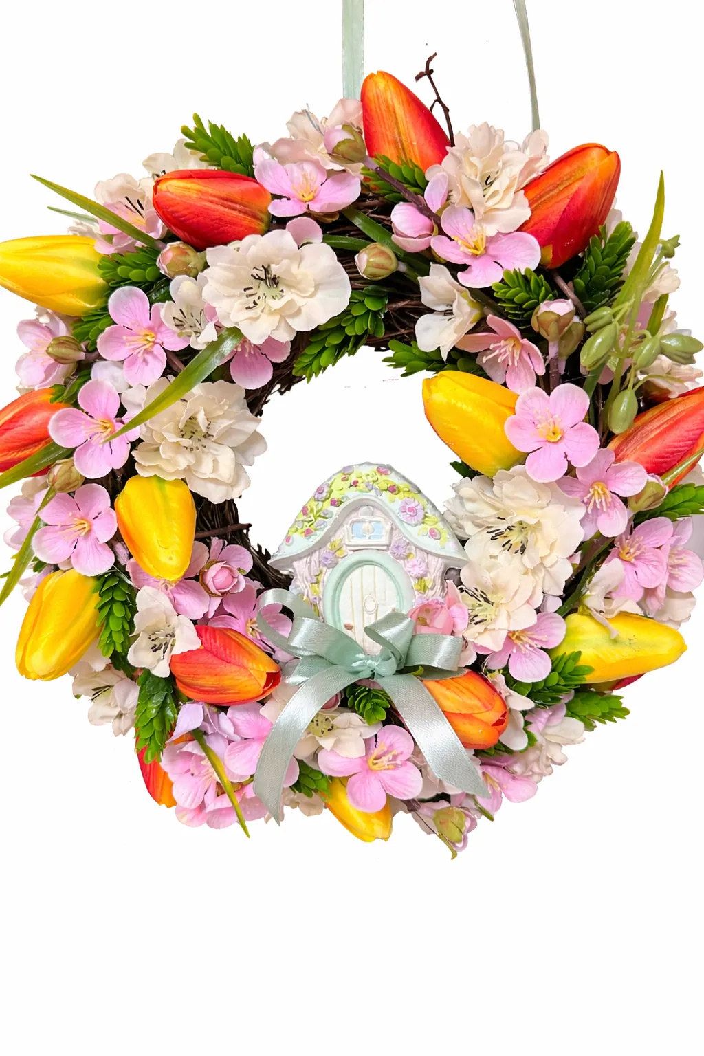 Această coroniță premium de primăvară este o piesă decorativă deosebită, creată pentru a transforma intrarea într-un spațiu plin de farmec și emoție. Baza este realizată din crengi naturale, atent împletite, oferind un aspect autentic și elegant, perfect pentru decoruri rafinate.
